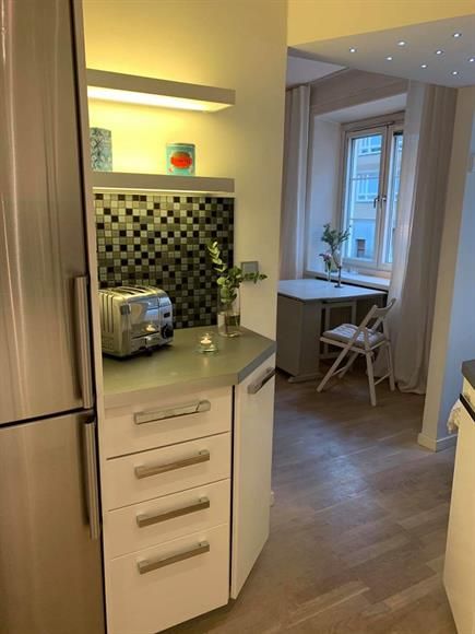 This apartment is located at a quiet place closed to Karlbergskanalen, Västermalmsgallerian shopping centre, buses and many restaurants. It is 4 minutes walk to Fridhemsplan metro station (T-bana). The apartment consists of two rooms, a hall, kitchen a bath room and a storage area. It is furnished and the kitchen is equipped with a Micro, fridge, refrigerator, oven, stove, and cabinets. The rent includes the charges for water, electricity, gas and Cable TV.