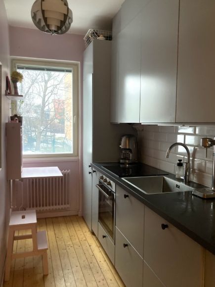 En ljus och välplanerad tvåa på 45 kvadrat, ligger på andra våningen. Bra ljusinsläpp med stora fönster i sovrum såväl i vardagsrummet, balkong i söderläge. Fräscht helkaklat badrum med golvvärme. Bekvämligheter som tvättmaskin och torktumlare finns i lägenheten. Skulle man vara i behov så finns det även en gemensam tvättstuga. Gångavstånd till all tänkbar service. Lägenheten är möblerad, dock utan husgeråd. Flera mysiga restauranger, gym, bagerier, caféer, mataffärer, barer. Allt finns inom ett par minuters gångavstånd. Inför sommaren goda badmöjligheter med flertalet bryggor och soldäck tillgängliga för allmänheten,. God kommunikation via buss (12 min med 1ans buss till T-Centralen) samt gångavstånd till Stora Essingen där tvärbana finns. Hyr ut lägenheten på grund av studier på annan ort.