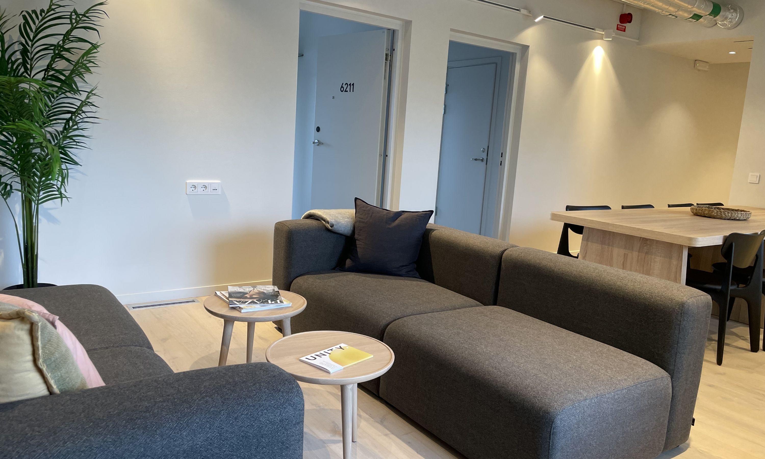 Känn dig som hemma i den här eleganta studiolägenheten i en ung community. Studion har multifunktionell design av den världsberömda designern Tom Dixon samt gott om inbyggd förvaring.Den här studiolägenheten har ett modernt pentry, ett rymligt badrum med dusch och gott om förvaringsutrymme för dina personliga saker. Njut av en måltid vid cafébordet och en god natts sömn i den bekväma sängen som också fungerar som en soffa.Möblerad studiolägenhet i samarbete med den brittiska designstudion Tom DixonKylskåp med frysfack, portabel induktionshäll och mikrovågsugn med grillfunktionBadrum med dusch och inbyggd förvaring90x200 cm säng som också fungerar som soffaCafébord med plats för 2 personer
