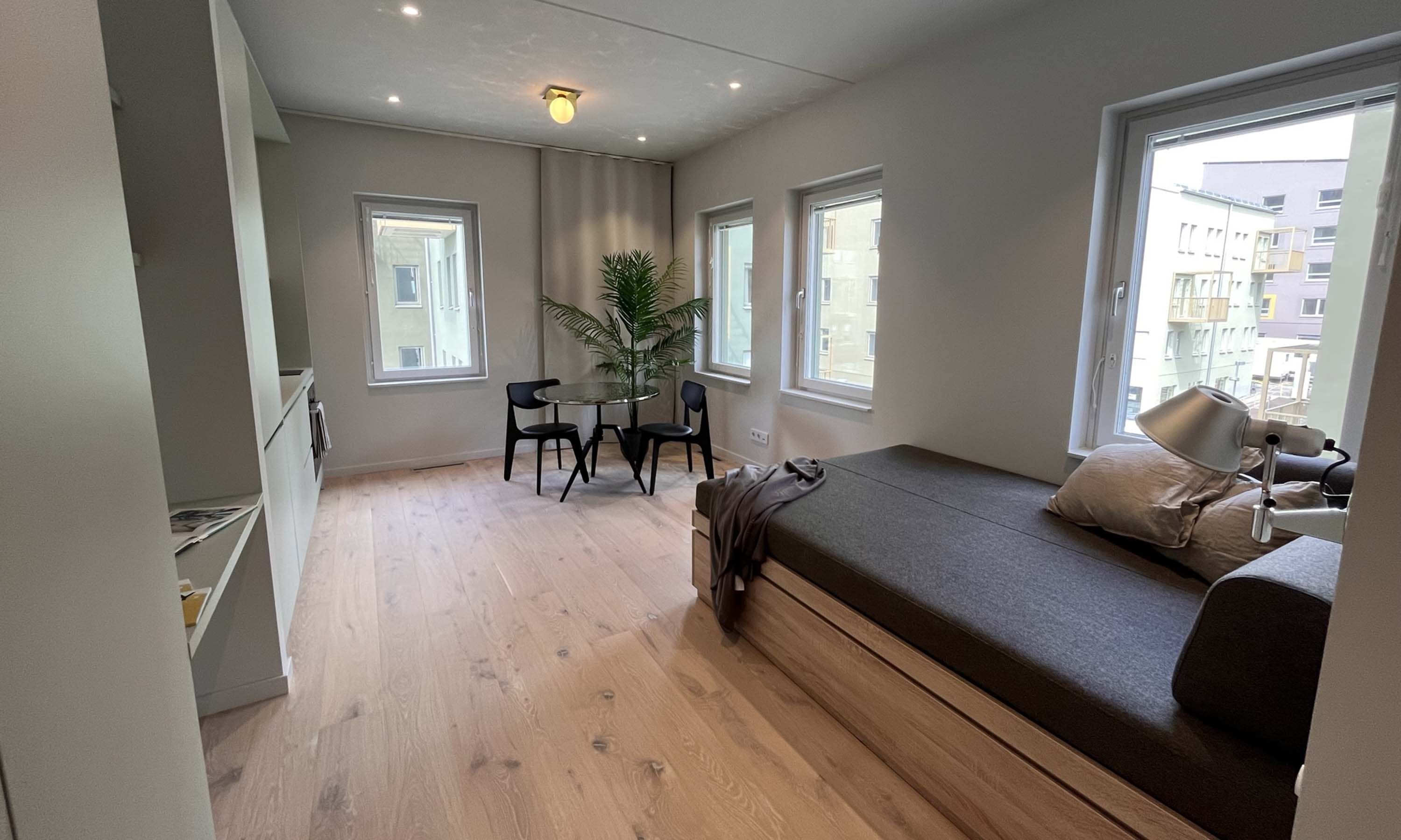 Möblerad och multifunktionell lägenhet med tillgång till flera gemensamma utrymmen
