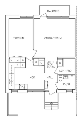 2 rum lägenhet på 63 m²