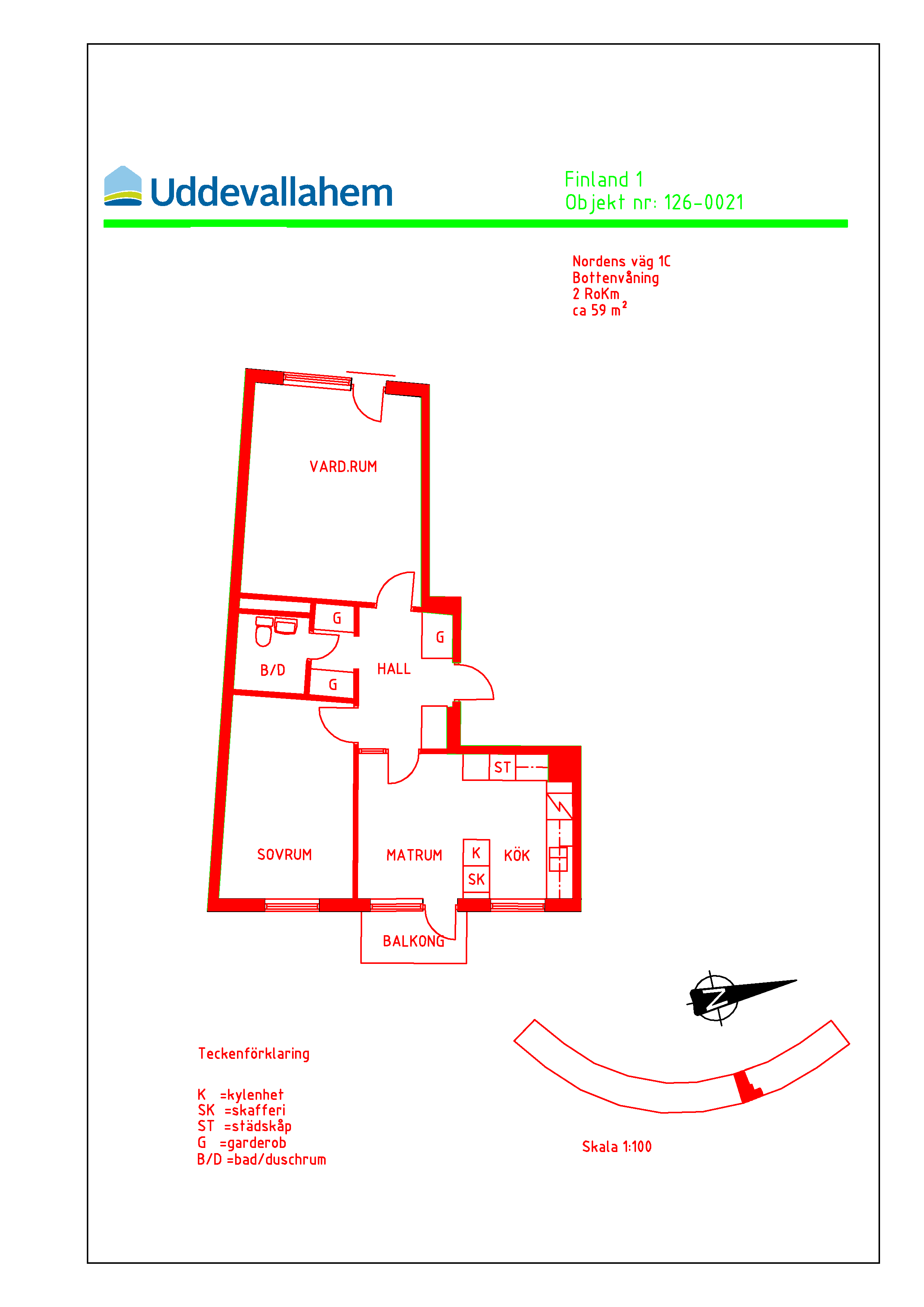 2 rum lägenhet på 57 m²
