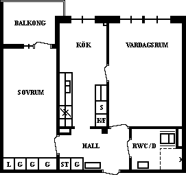 2 rum lägenhet på 48 m²