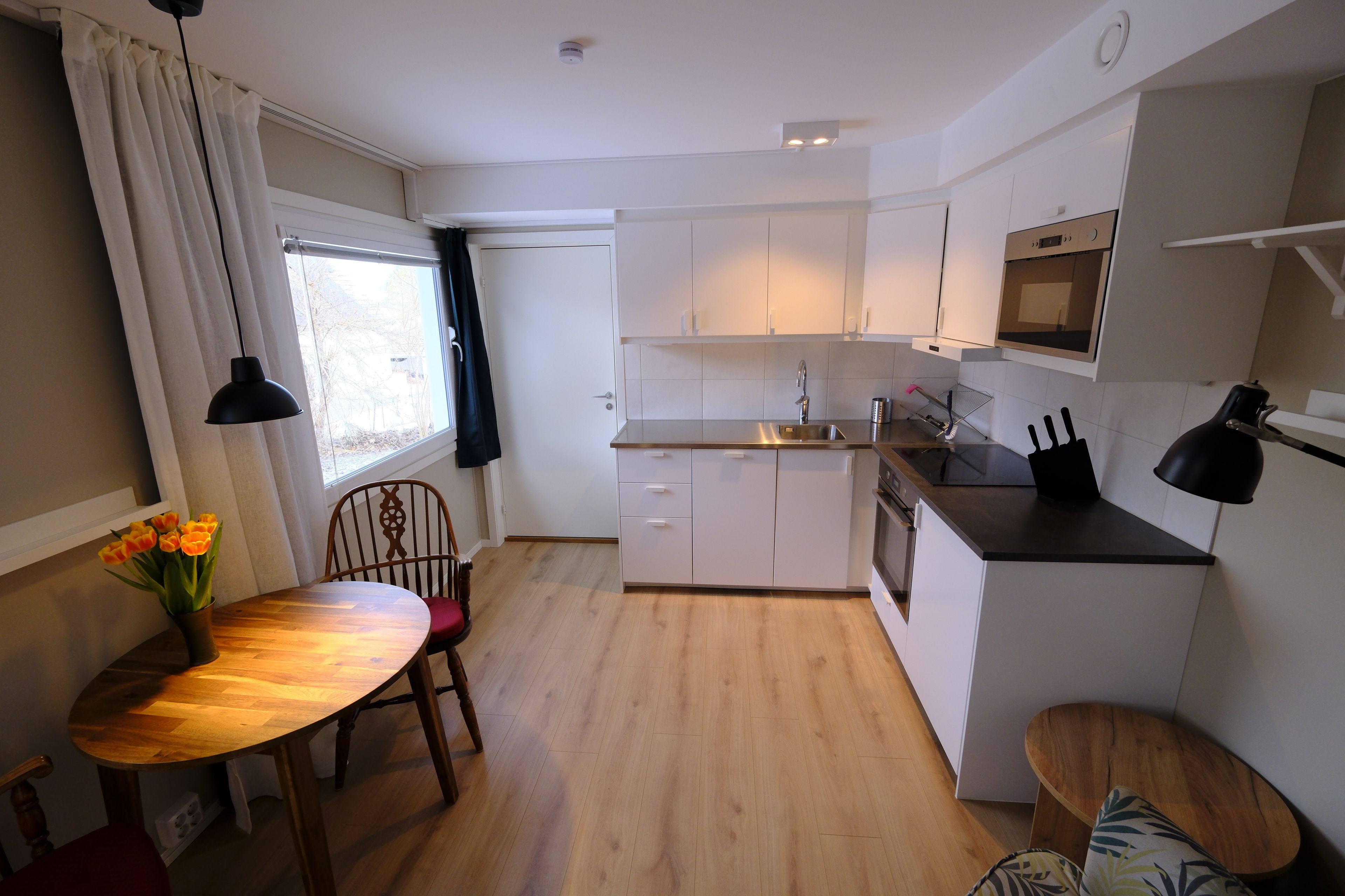 Uthyrningsdel med ett inte helt komplett kök men det finns möjlighet att laga mat i delen.