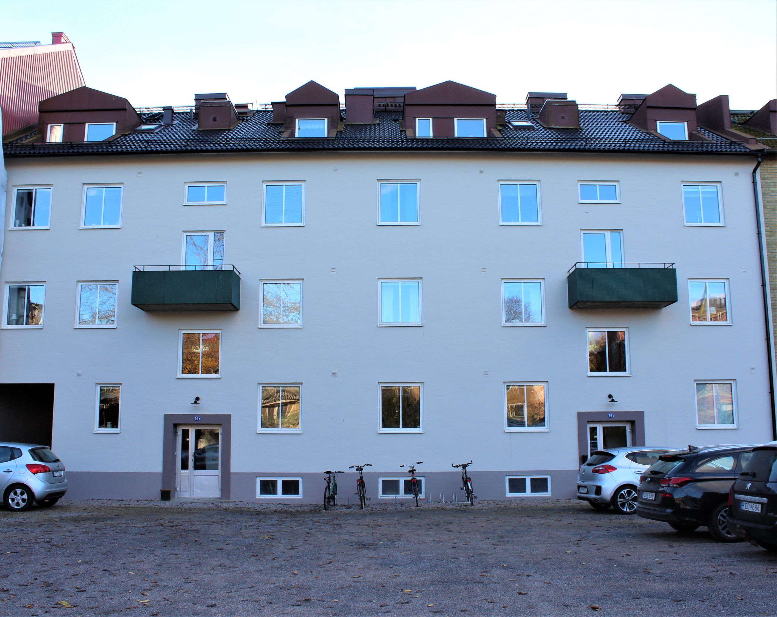 Detta är ett område med lägenheter från 1 till 5 rum och kök. Det stora lägenheterna, de stora grönytorna och den bilfria innergården med lekplats lockar många barnfamiljer och 2017 byggdes här en ny stor lekplats med lekredskap, pergola och grillplats. De flesta av de 176 lägenheterna har antingen uteplats eller balkong. Tvättstugan ligger i ett separat hus på gården, där det också finns en grovtvättstuga. Området har också en tvättstuga speciellt avsedd för mattor.