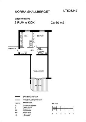 2 rum lägenhet på 63 m²