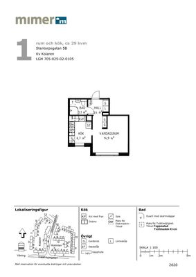 Lägenheten om 1 rum och kök är fördelad på ca 28 kvadratmeter och är belägen i markplan med uteplats. Bostaden producerades år 2023 och erbjuder genomgående ljusa, fräscha ytskikt med fina ekparkettgolv i hela lägenheten. En lägenhet att stortrivas i.