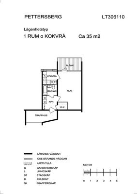 1 rums lägenhet på 35 m²