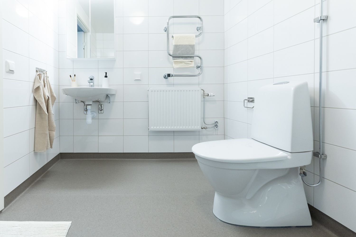 Helkaklat badrum med duschhörna.