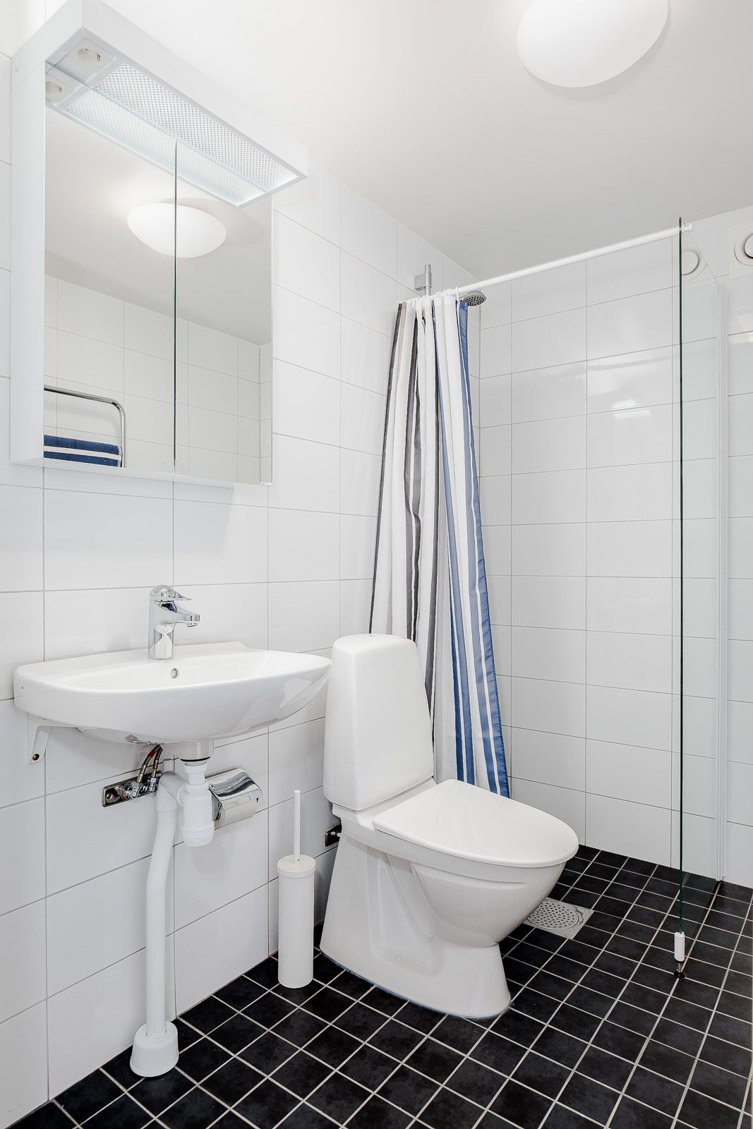Badrummet är stilrent och helkaklat och har badkar.