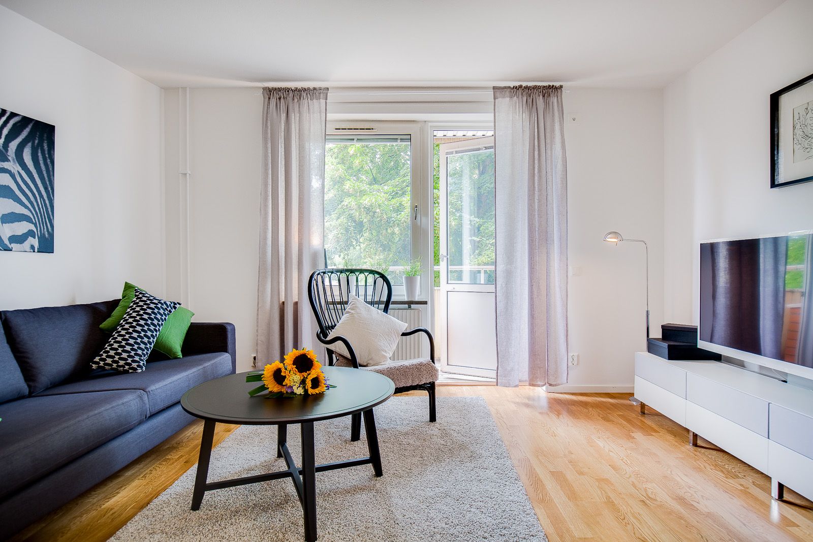 Vardagsrummet är rymligt med fint ljusinsläpp och har utgång till balkong.