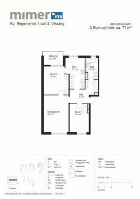 3 rum lägenhet på 77 m²