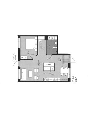 2 rum lägenhet på 62 m²