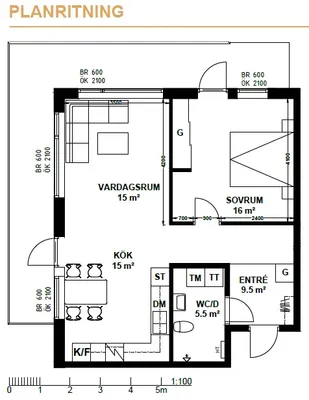2 rum lägenhet på 51 m²