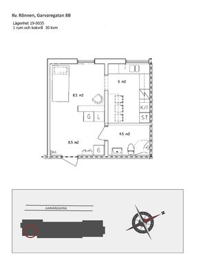1 rum lägenhet på 30 m²