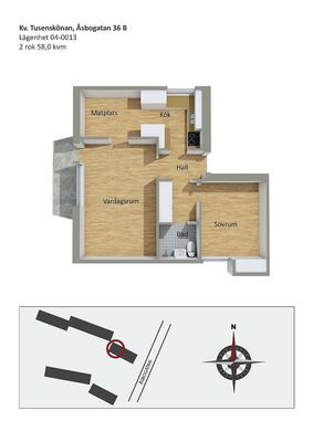 2 rum lägenhet på 58 m²