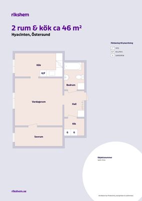 2 rum lägenhet på 46 m²