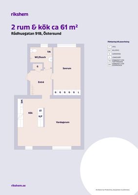 2 rum lägenhet på 61 m²