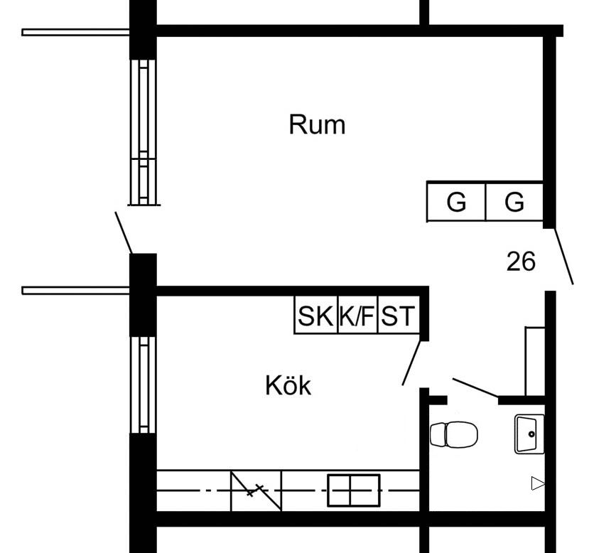 1 rums på 35 m²