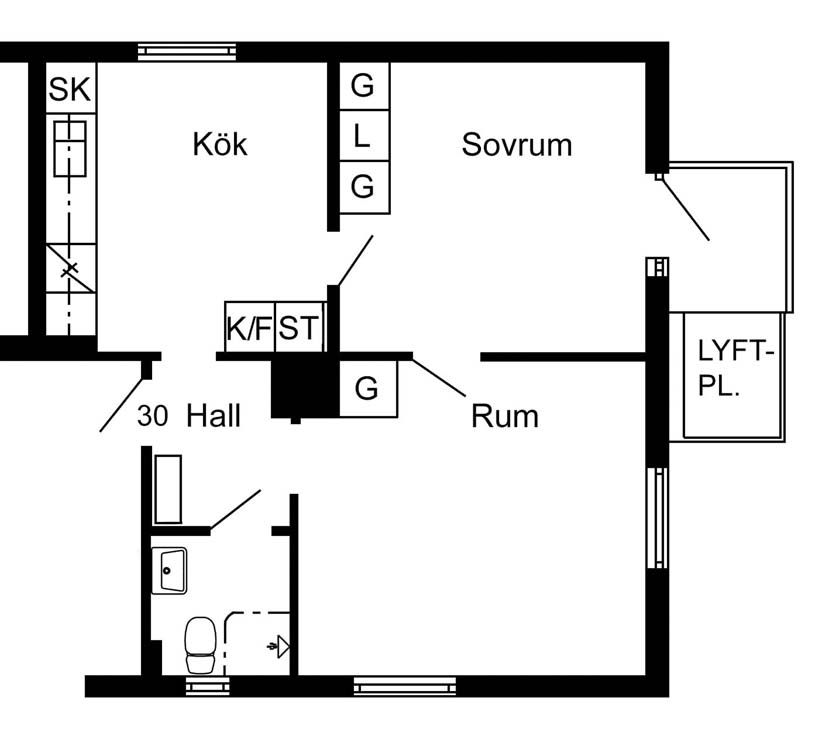 2 rum lägenhet på 60 m²