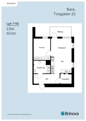 2 rum lägenhet på 55 m²