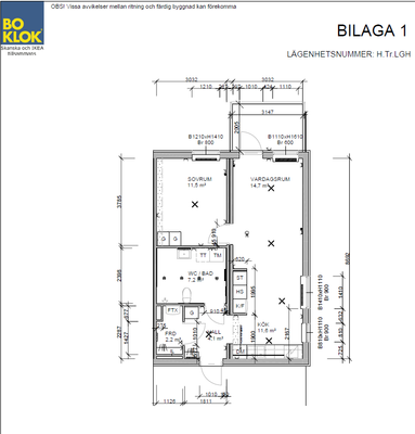 2 rum lägenhet på 62 m²