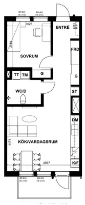 2 rum lägenhet på 64 m²