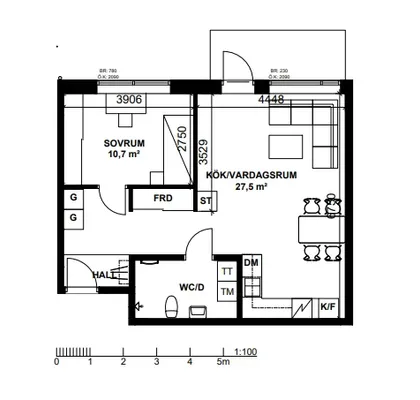 3 rum lägenhet på 107 m²