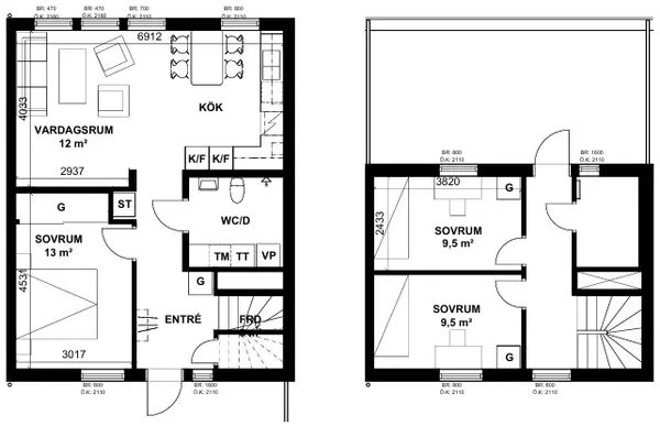 2 rum lägenhet på 55 m²