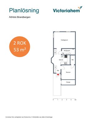 2 rum lägenhet på 53 m²