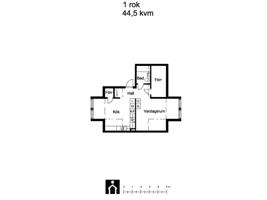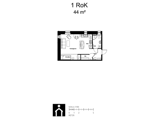 1 rums på 44 m²