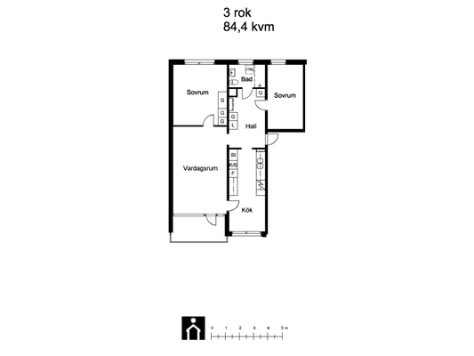 3 rums på 84 m²