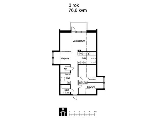 3 rums på 76 m²