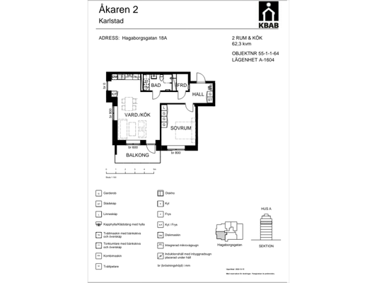 2 rums på 62 m²