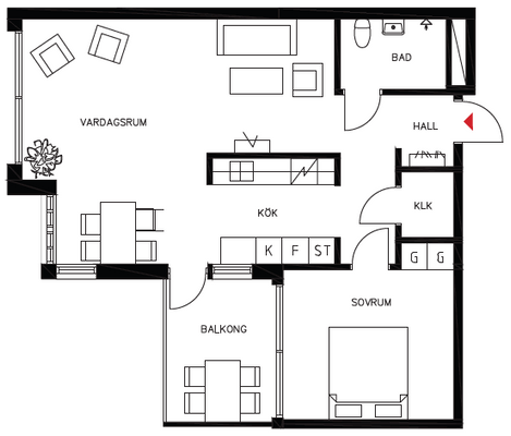 2 rum lägenhet på 68 m²