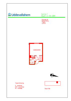 1 rum lägenhet på 19 m²