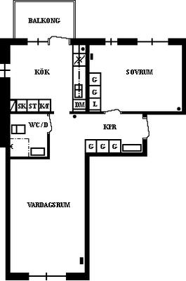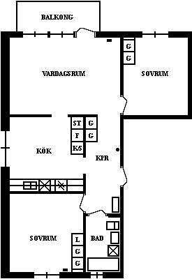 2 rum lägenhet på 45 m²