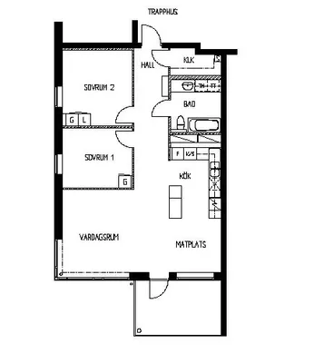 2 rum lägenhet på 56 m²