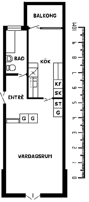 1 rum lägenhet på 19 m²
