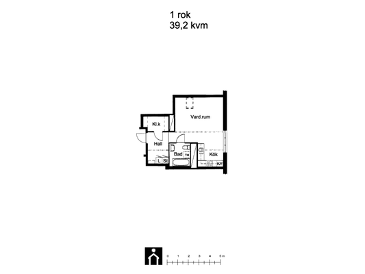 1 rums på 39 m²
