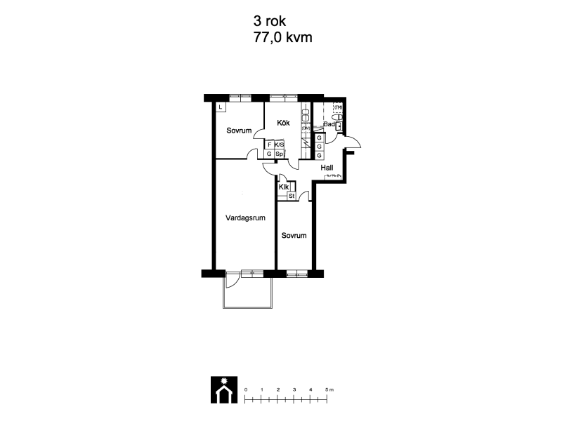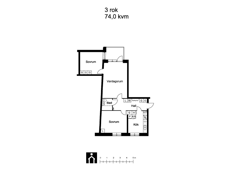 3 rum lägenhet på 74 m²