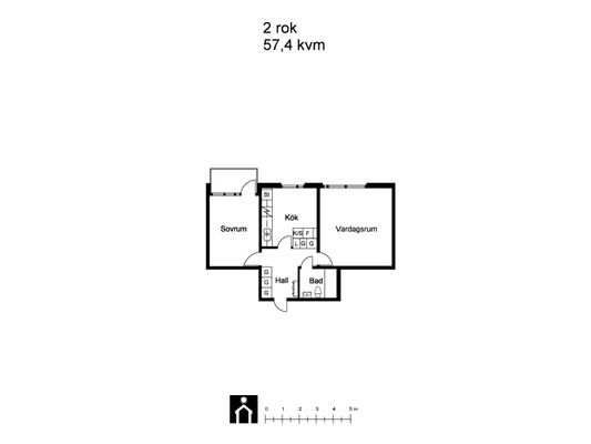 2 rums på 57 m²