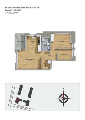 3 rum lägenhet på 60 m²