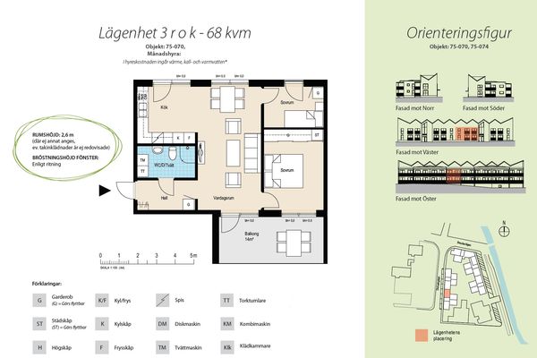 3 rum lägenhet på 68 m²