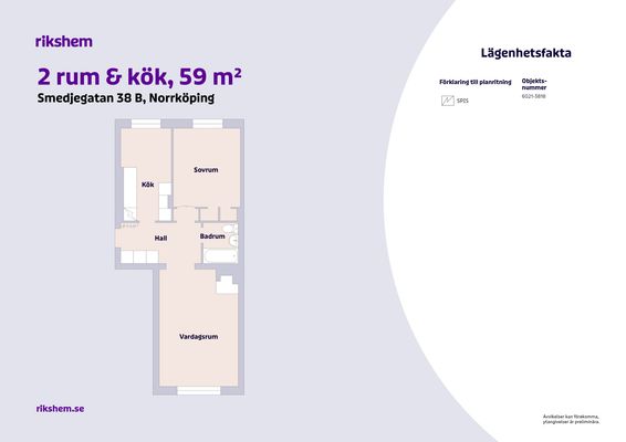 2 rum lägenhet på 59 m²
