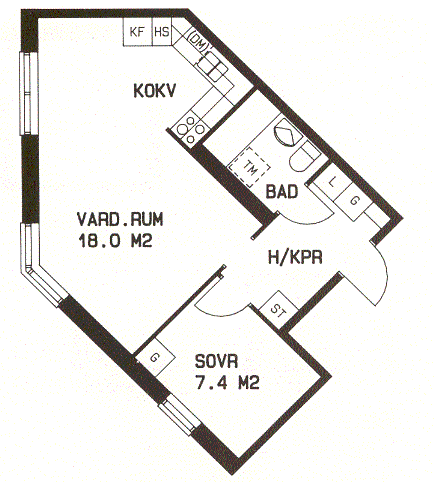 2 rum lägenhet på 45 m²