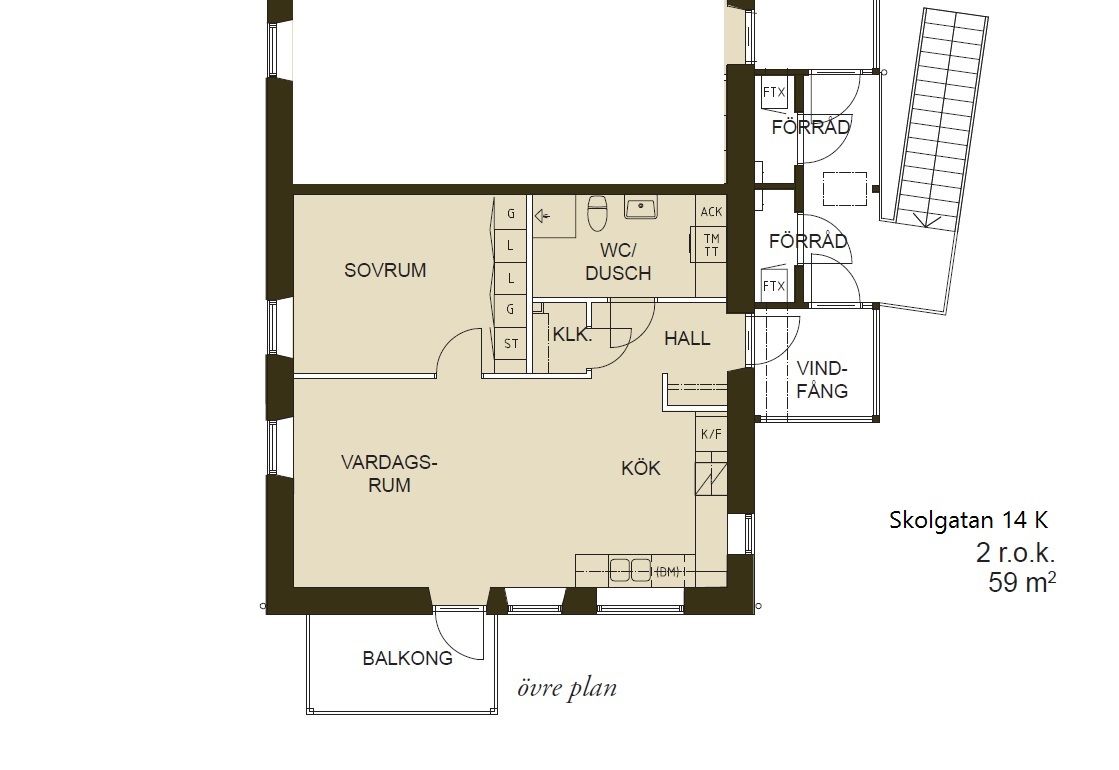 2 rum lägenhet på 59 m²