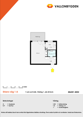 1 rum lägenhet på 35 m²