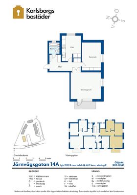 2 rum lägenhet på 61 m²