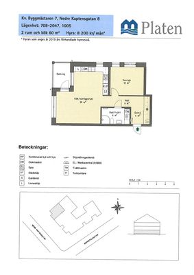 2 rum lägenhet på 60 m²
